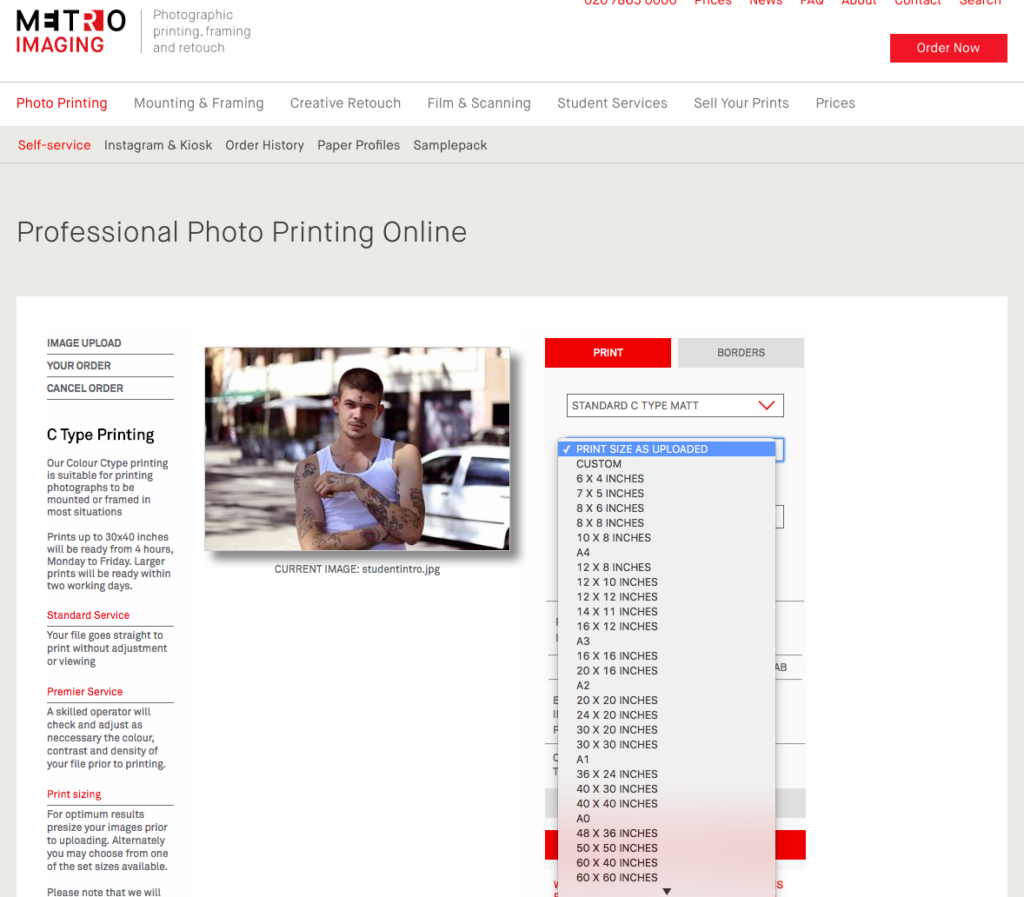We can print your pictures to any size or proportion from 10×8 inches to 3m x 1.8m mural sized. For optimum results, we suggest using Photoshop to resize your images, including any required borders, before uploading them. If you don’t have access to Photoshop, don’t worry – simply upload your original images, and choose from one of the set paper sizes in the drop down menu, or manually enter a custom size. The DPI of your image at the chosen size will be displayed before ordering. Generally an image DPI of over 200 is better. But over 150 should be fine.