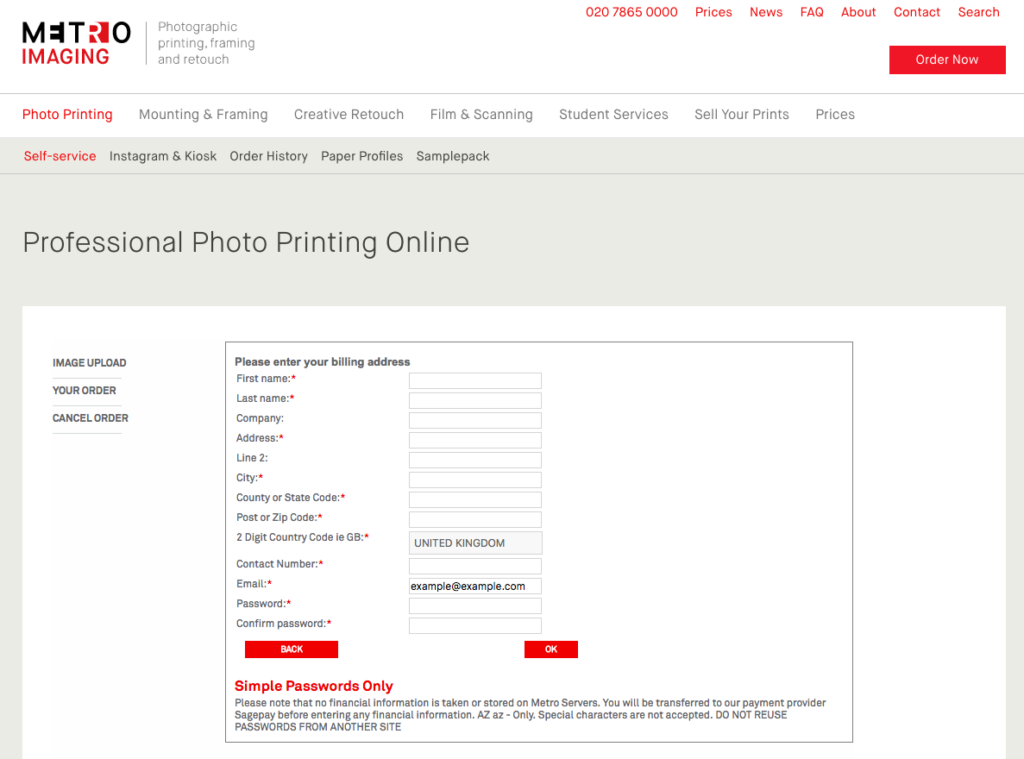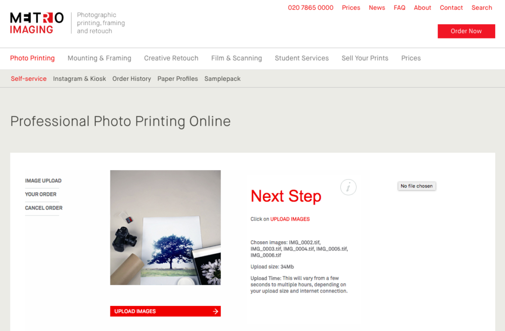 Please ensure that file names on your images only include letters, numbers, dashes and underscores. Files uploaded containing special characters such as ‘!#@’ will fail at the next stage, generally showing a small thumbnail and the message ‘not available’. This means you won’t be able to proceed with the order.