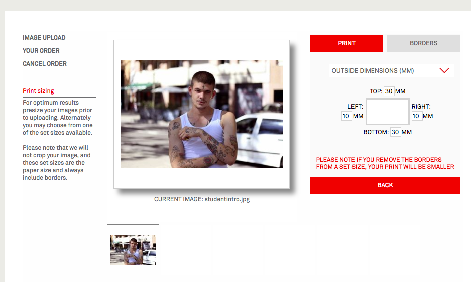By choosing the Borders Tab you can also add additional borders, either within the current dimensions, or in addition to your print size.